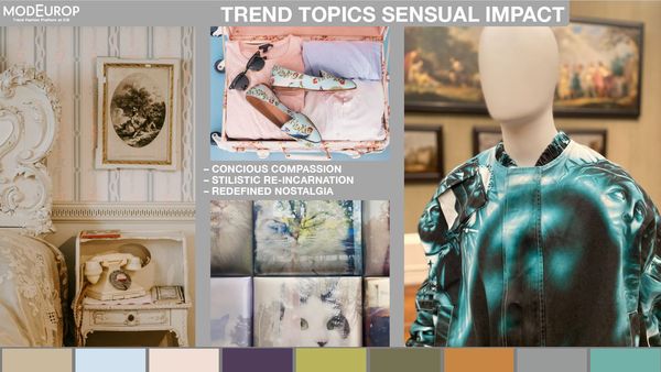„SENSUAL IMPACT“ představuje rovnováhu mezi nostalgií a moderností. Jemné, snové barevné světy se snoubí s prvky pracovních oděvů. Materiály jako peří, třásně nebo kamínkové detaily dodávají výrobkům emocionální, řemeslný nádech.